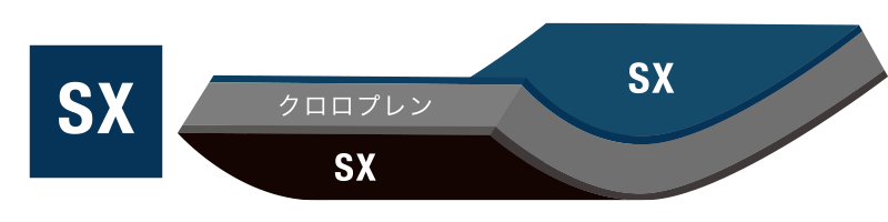 生地接合部をオリジナル高伸縮テープで熱圧着し防水性・耐久性を高めた無縫製のシームレス製法