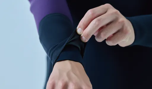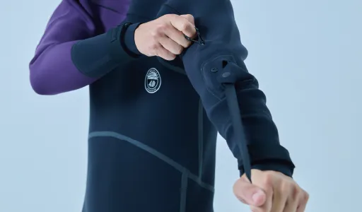 股マチのパーツをなくすことで可動域を拡大させ開脚・屈伸のストレスと浸水発生率を大幅低減